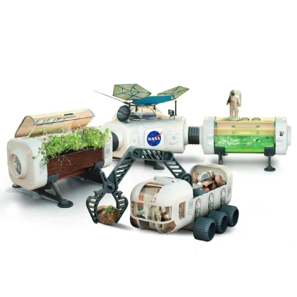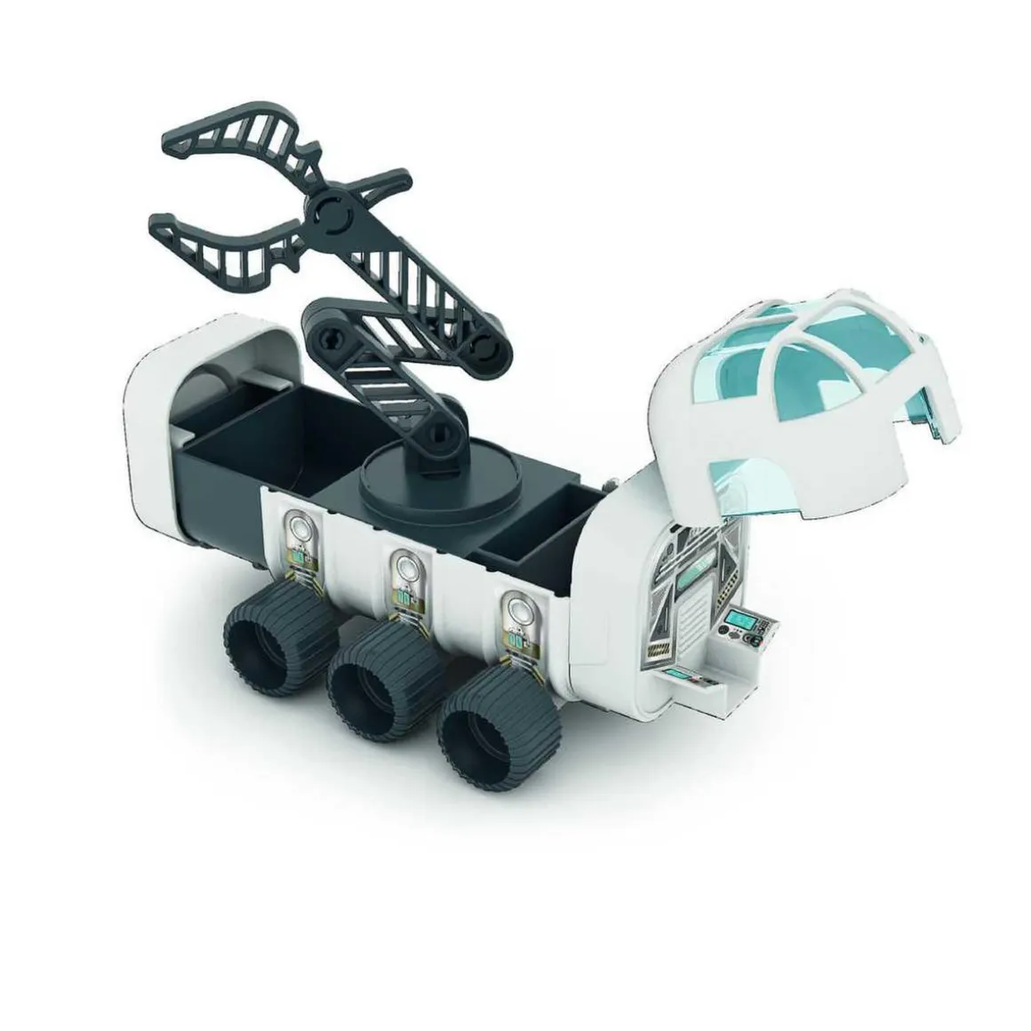 Incluye módulos para experimentos científicos y un Rover espacial para explorar el planeta rojo.