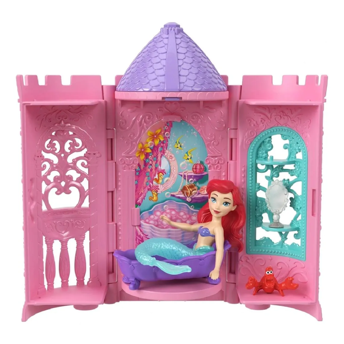 - Muñeca sorpresa: Abre la torre para revelar una muñeca articulada inspirada en princesas disney.