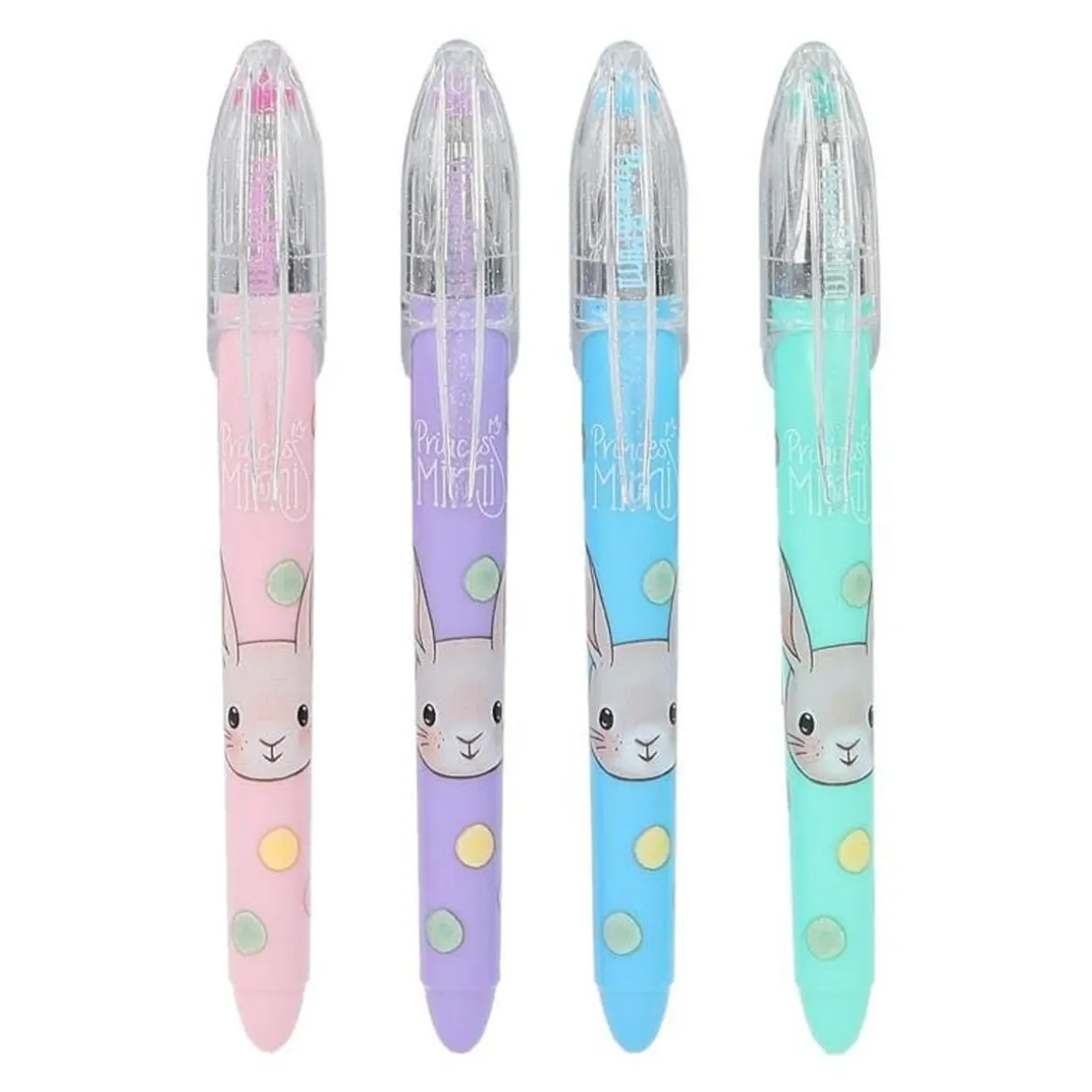 Descubre la magia de escribir y dibujar con «4 bolígrafos de gel Princess Mimi». Este set está diseñado especialmente para que los más jóvenes puedan dejar volar su imaginación y crear pequeñas obras de arte. Con cuatro bolígrafos de gel en tonalidades vibrantes de rosa, lila, azul y verde, cada trazo se convierte en una fiesta de color. Ideal para llevar en la mochila, su diseño de conejitos hace que cada uso sea una experiencia encantadora. ¡Perfectos para dar vida a tus cuadernos y proyectos creativos!
