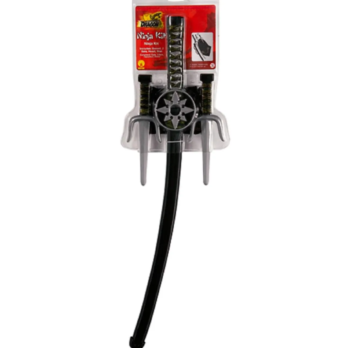 Set Ninja Dragón, un accesorio para disfraces ninja y un conjunto ninja dragón. De PVC, incluye pañuelo, katana, 2 dagas y estrella. Edad recomendada: +14 años.
