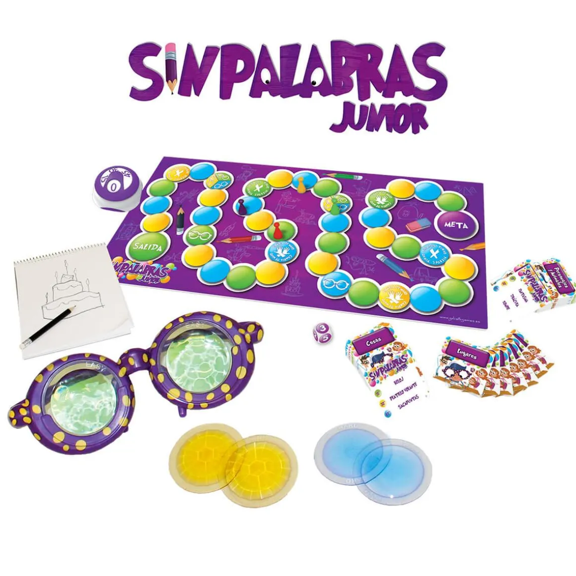 Sin Palabras Junior, un juego de habilidad en el que tendrás que dibujar o actuar para que los demás jugadores adivinen tus cartas.