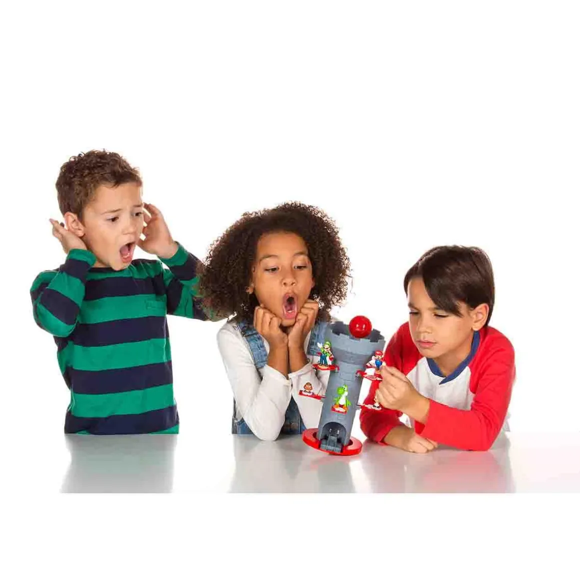 Suerte con el dado para colocar a tu personaje en las plataformas de la torre. ¡Ten cuidado! Cada figura tiene un peso diferente y hará mover la torre de un lado a otro y si despiertas a Bowser, la bola se caerá y ¡volarán todos los personajes!