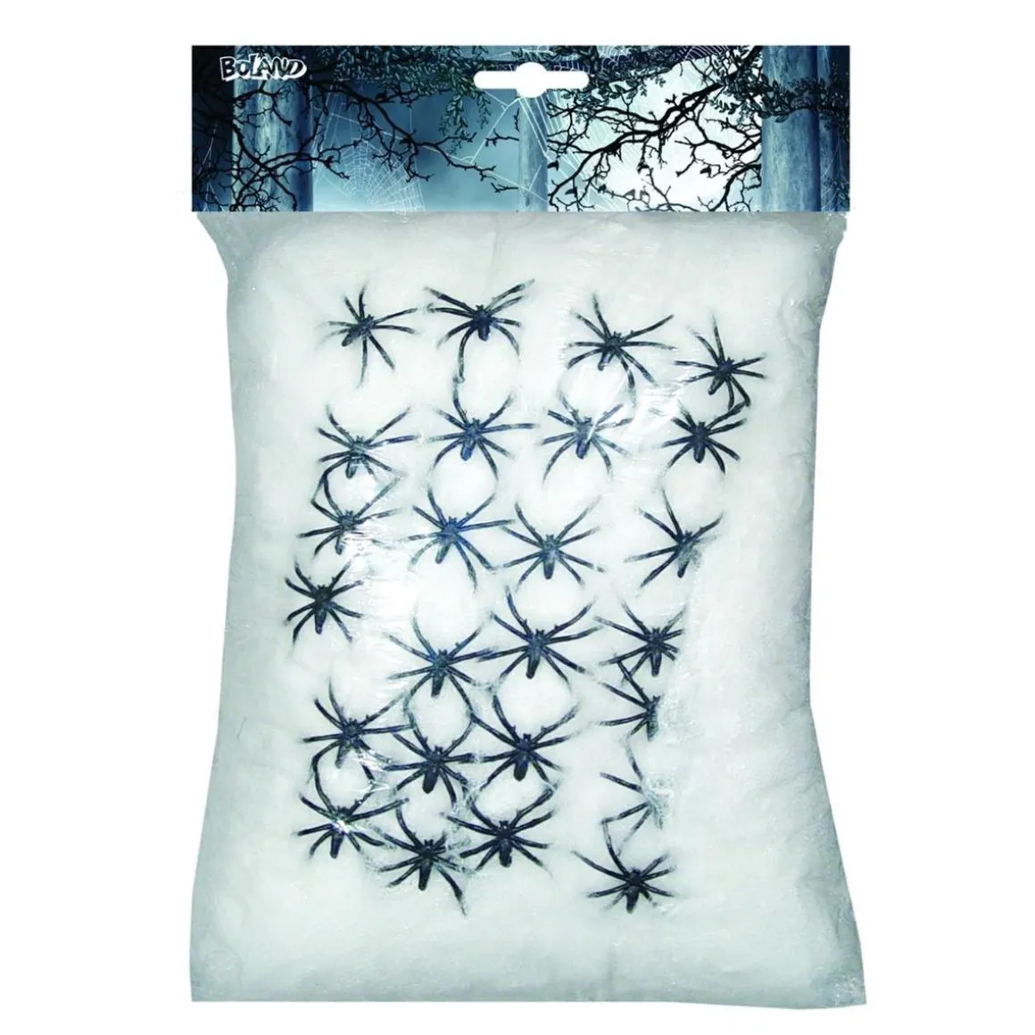 La telaraña, elaborada con una textura realista, se adhiere fácilmente a cualquier superficie, desde paredes hasta muebles y techos. Las arañas que la acompañan añaden el toque final perfecto, dando la impresión de que estos insectos tenebrosos han tejido su red en tu hogar.