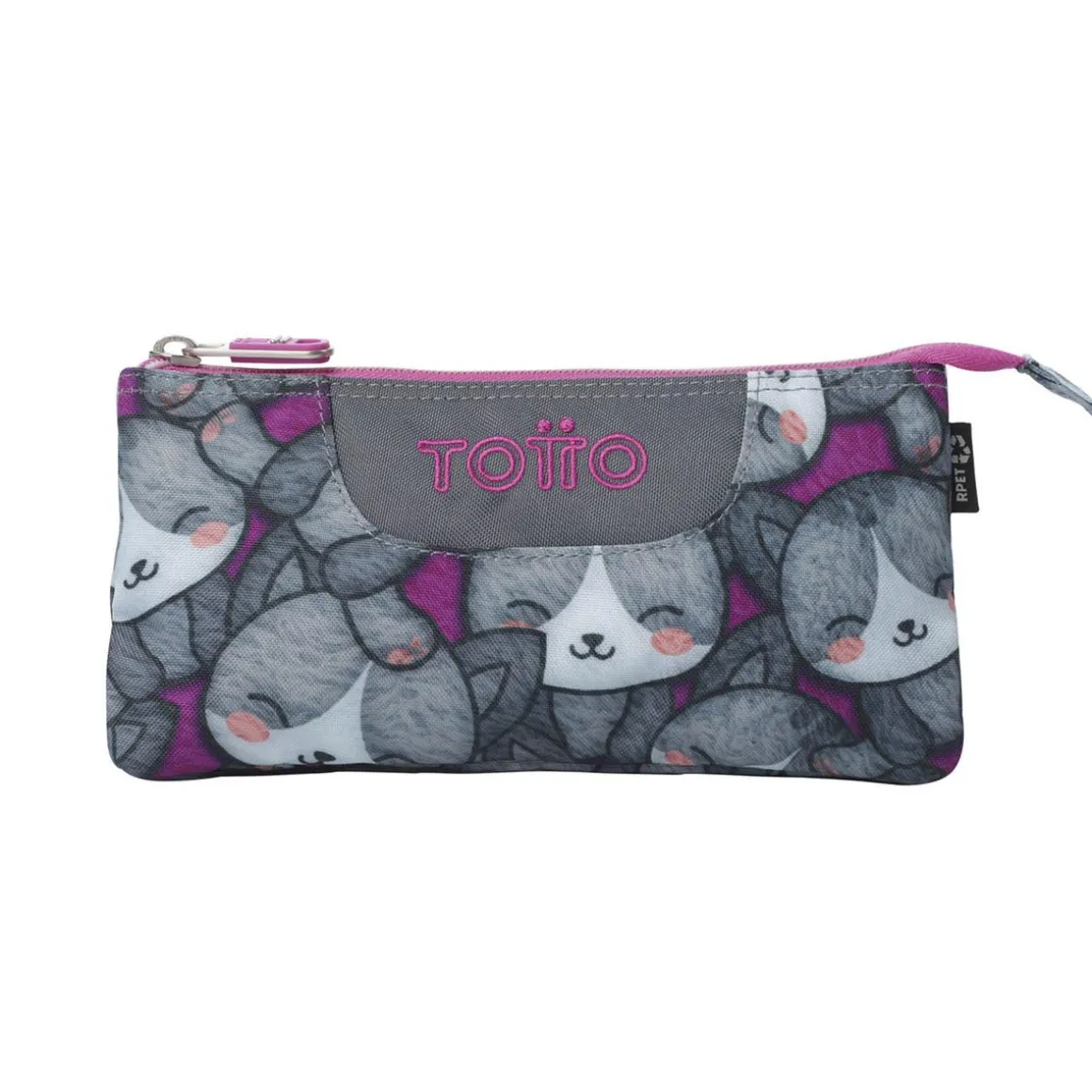 Déjate envolver por la ternura del estuche escolar Tablero Kitten Rose, pensado para quienes adoran los diseños delicados y llenos de dulzura. Su estampado presenta adorables gatitos y suaves tonos rosados, transmitiendo simpatía y alegría a cada jornada escolar. Dispone de tres compartimentos amplios que permiten mantener lápices, bolígrafos, rotuladores y pequeños accesorios perfectamente organizados y siempre a mano. Fabricado en material RPET procedente de botellas plásticas recicladas, es una opción sostenible y resistente, ideal para el uso diario. Su tejido repelente a líquidos protege eficazmente el contenido ante posibles derrames, mientras sus organizadores elásticos interiores mantienen cada objeto en su sitio. Incluye un tirador ergonómico para abrirlo con facilidad y un logo bordado que aporta un toque distintivo y elegante. Perfecto para estudiantes que buscan reflejar su personalidad dulce mientras cuidan del planeta.