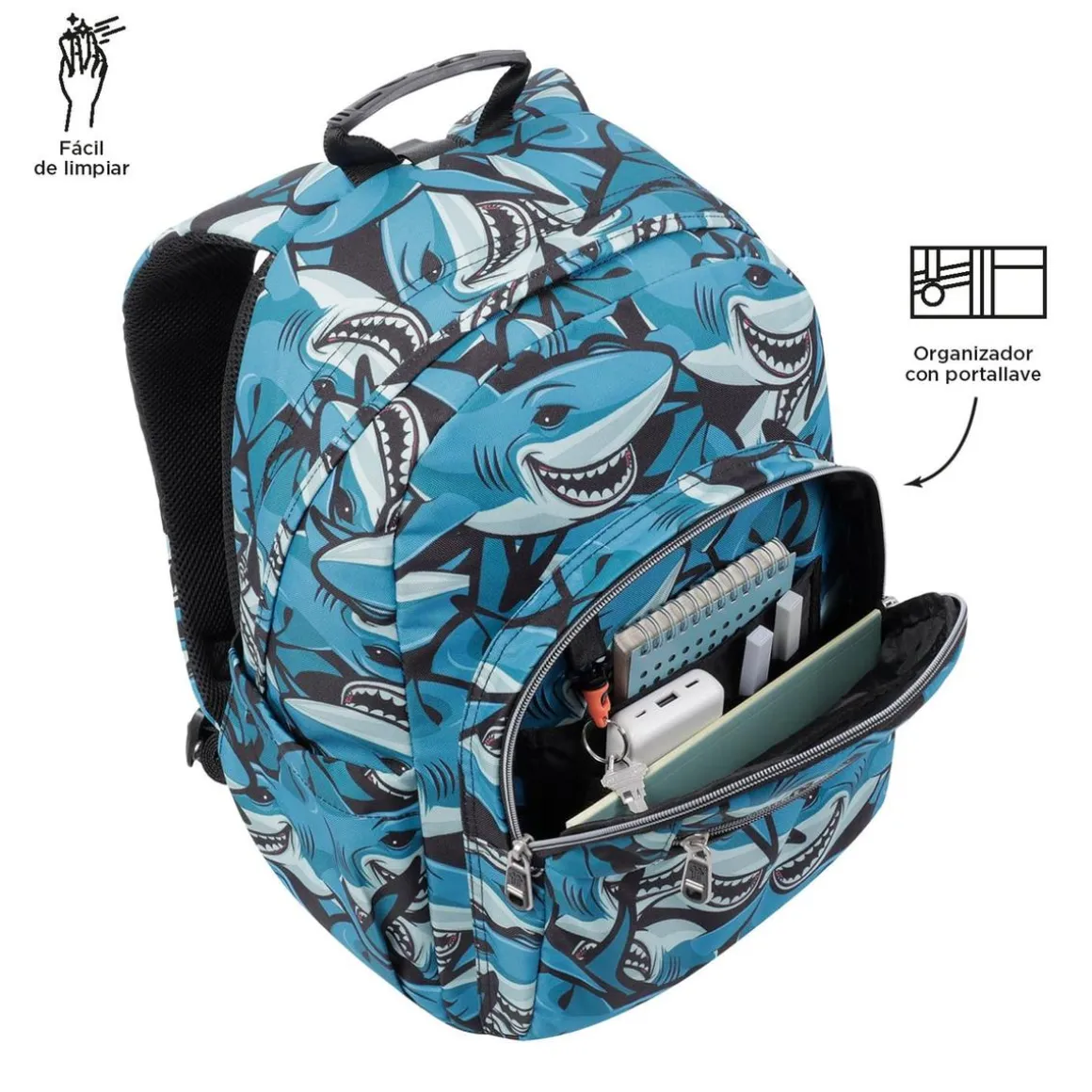 Totto – Mochila escolar adaptable a carro tiburones Acuareles, una mochila que se adapta al carro y se puede llevar como mochila de espalda o con ruedas indistintamente.