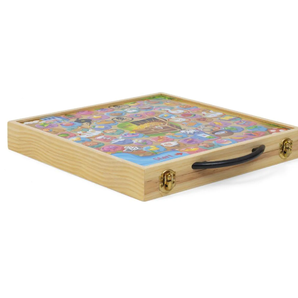 Hecha de madera, esta caja para juegos de mesa es resistente y duradera para muchos años de juego.